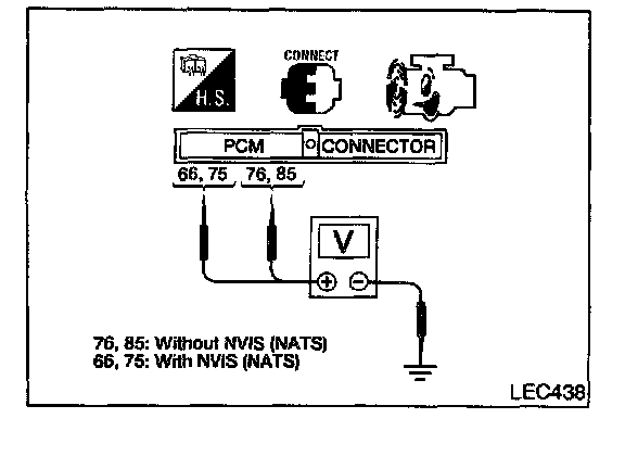 2. Check voltage between PCM terminals and engine ground as follows.
