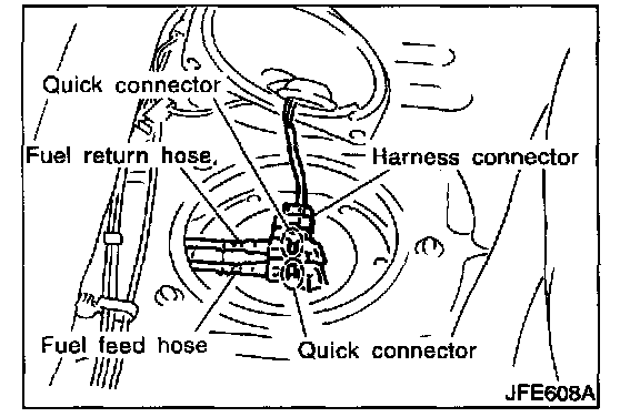 - For disconnect of quick connectors, refer to step 5. of "Fuel Tank Removal".