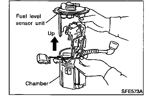 16. Pull up the fuel level sensor unit from the chamber.