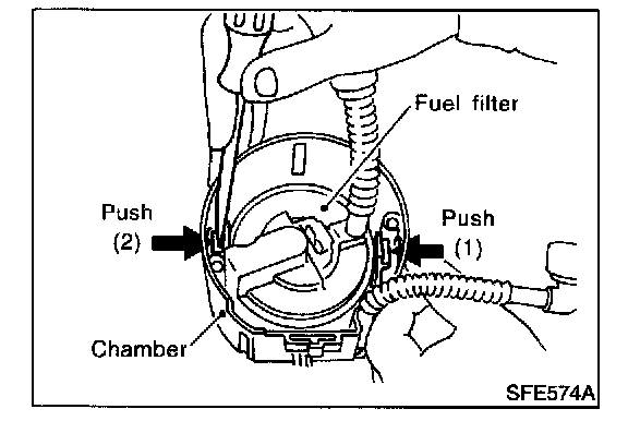 17. Release the fuel filter from the chamber as follows: