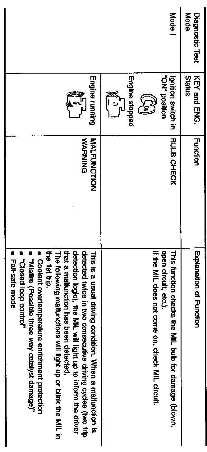 1. The MIL will light up when the ignition switch is turned ON without the engine running. This is a bulb check.