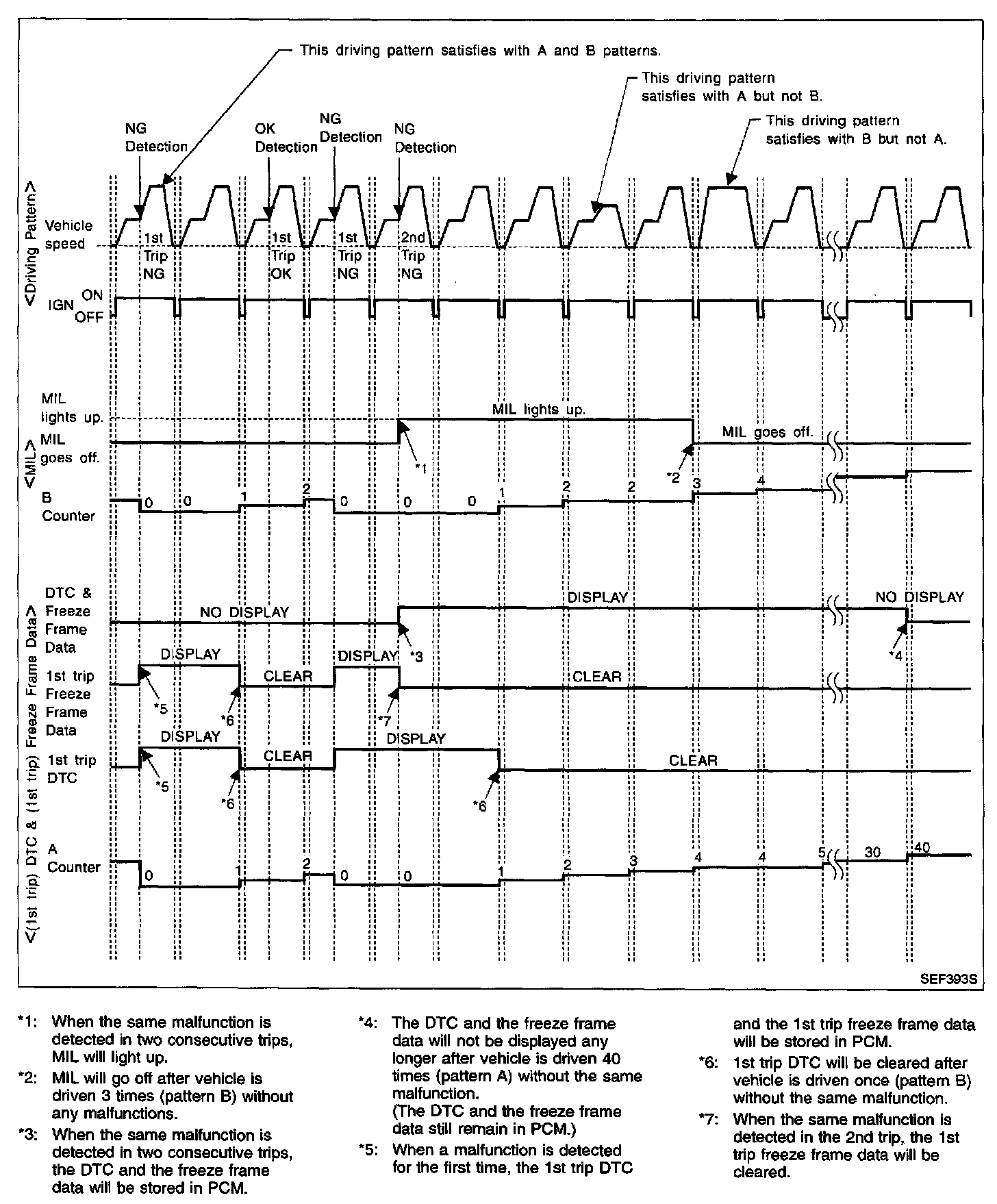 - The B counter will be cleared when the malfunction is detected once regardless of the driving pattern.