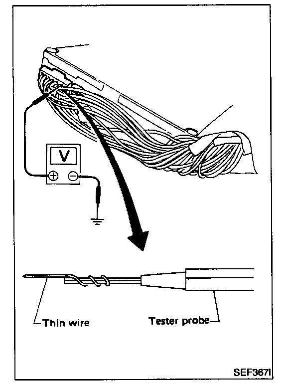 3. Perform all voltage measurements with the connector connected. Extend tester probe as shown to perform tests easily.