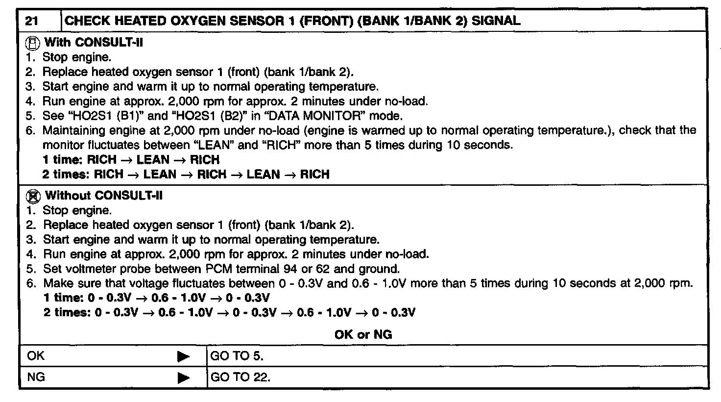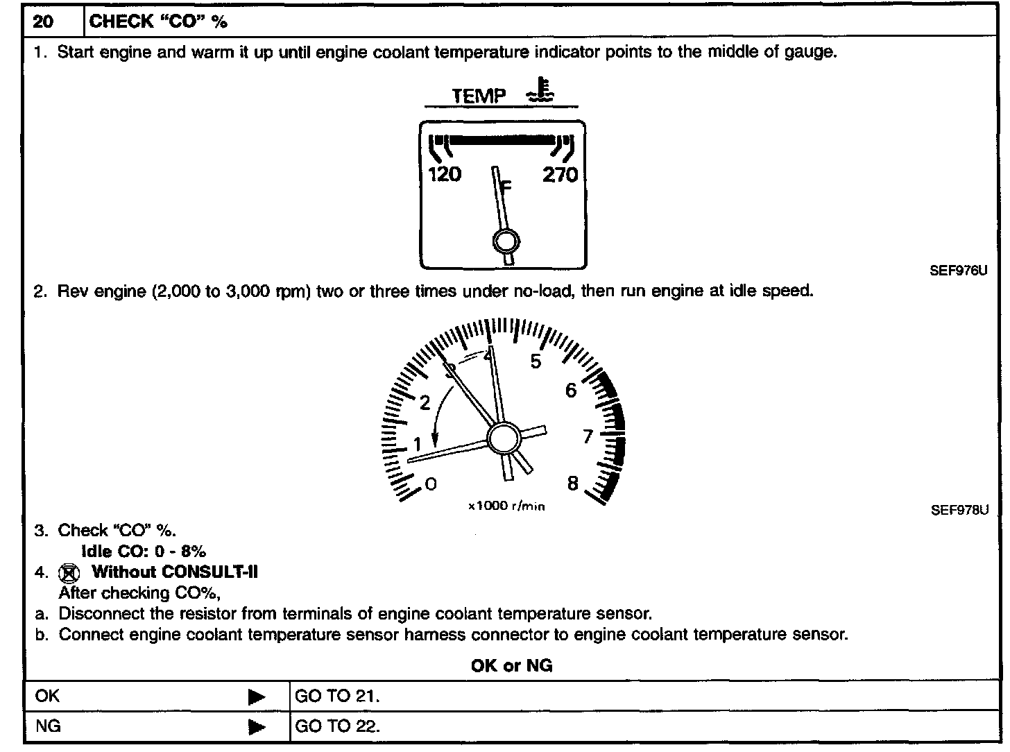 2. On models equipped with air conditioner, checks should be carried out while the air conditioner is "OFF".
