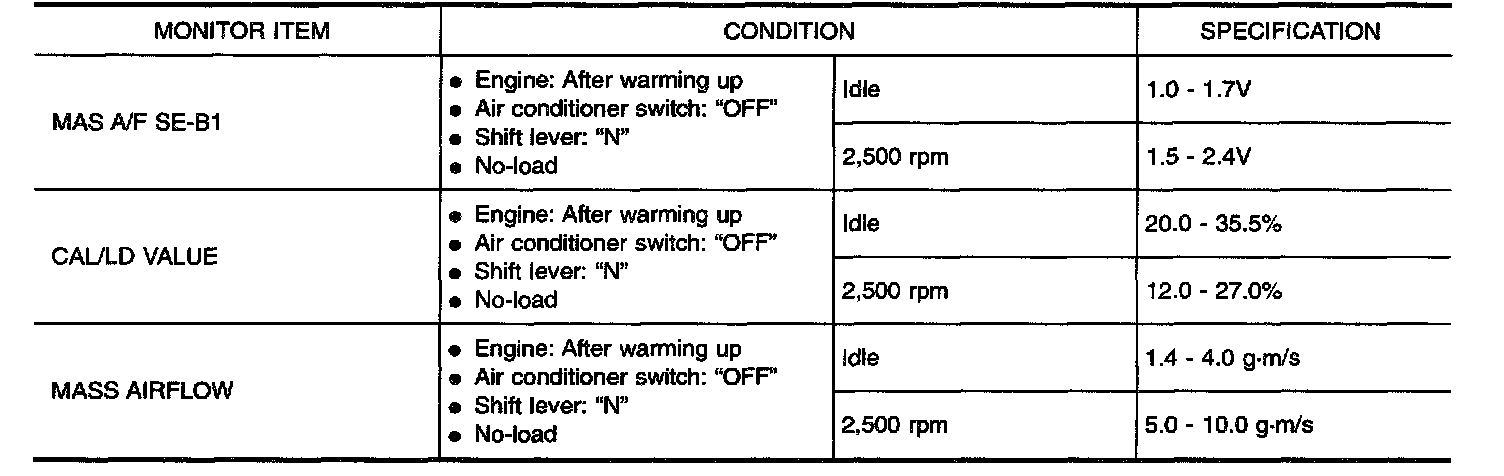 CONSULT-II Reference Value in Data Monitor Mode: