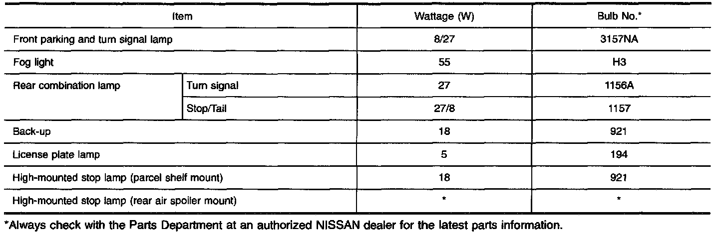 Bulb Specification - Exterior Lamp: