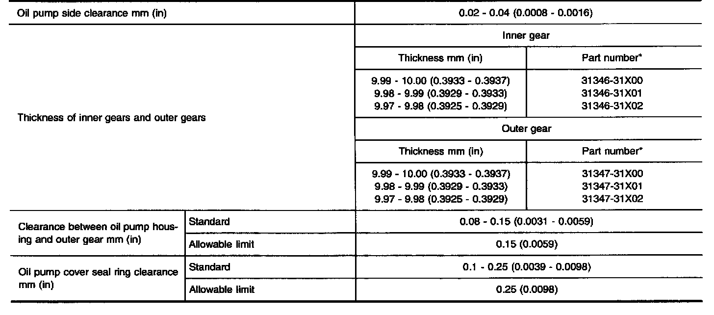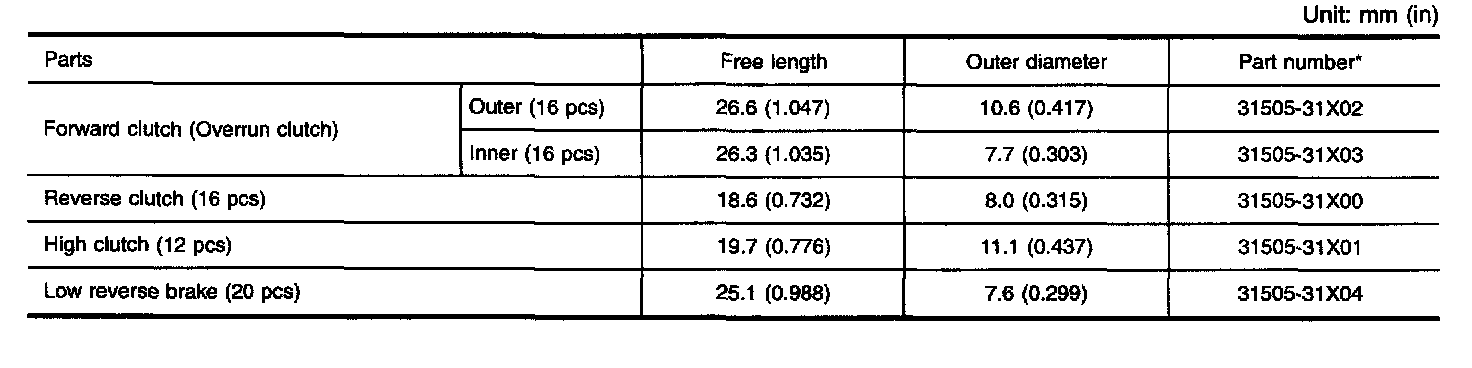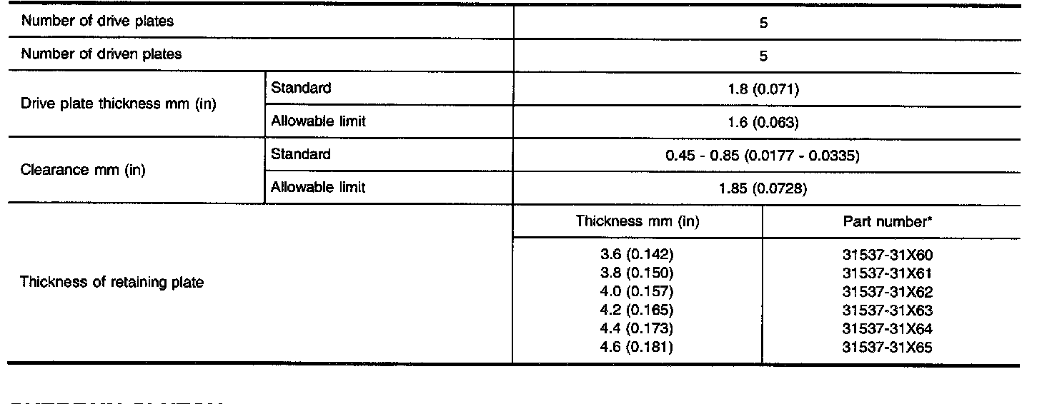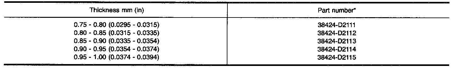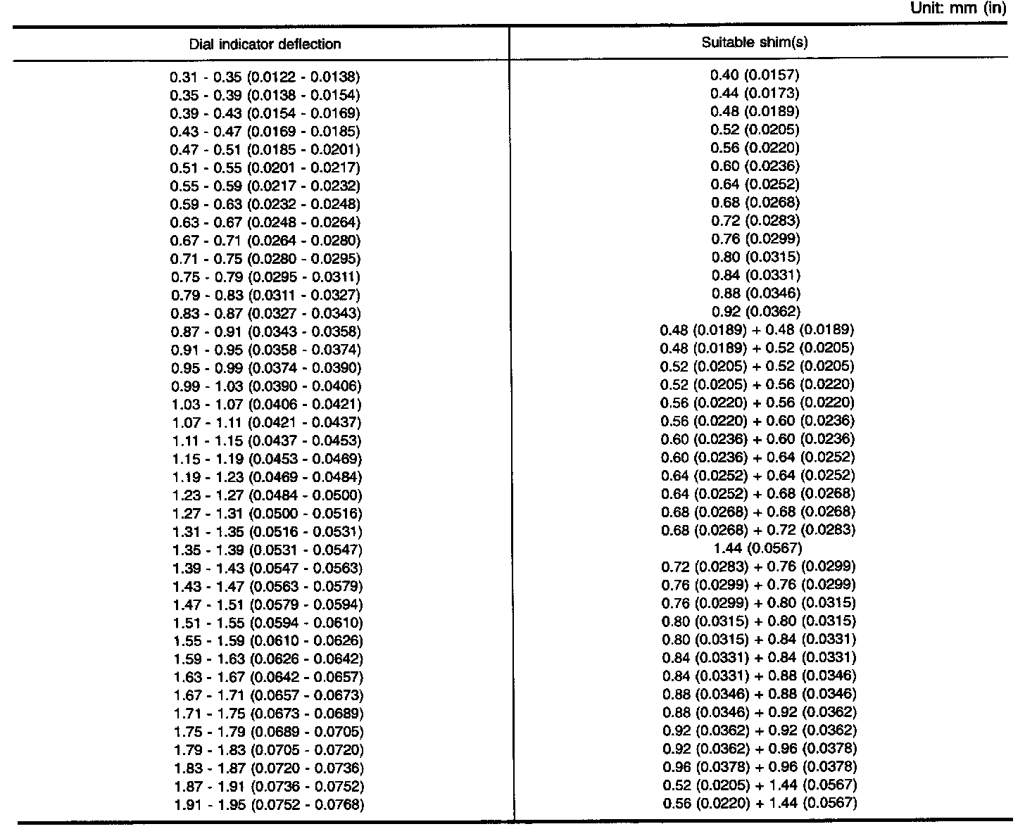 TABLE FOR SELECTING DIFFERENTIAL SIDE BEARING ADJUSTING SHIMS