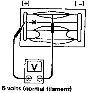 1. Attach probe circuit tester (in volt range) to middle portion of each filament.