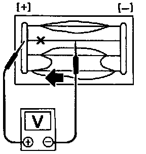 3. To locate burned out point, move probe to left and right along filament. Test needle will swing abruptly when probe passes the point.