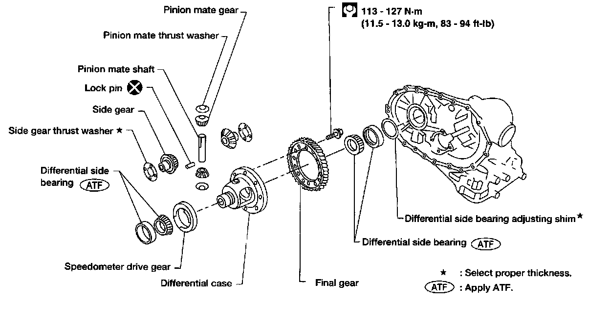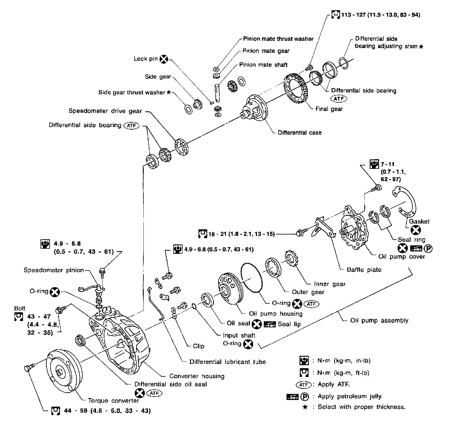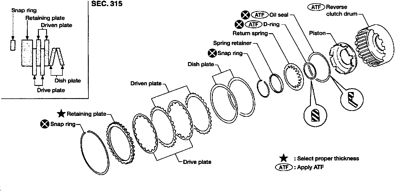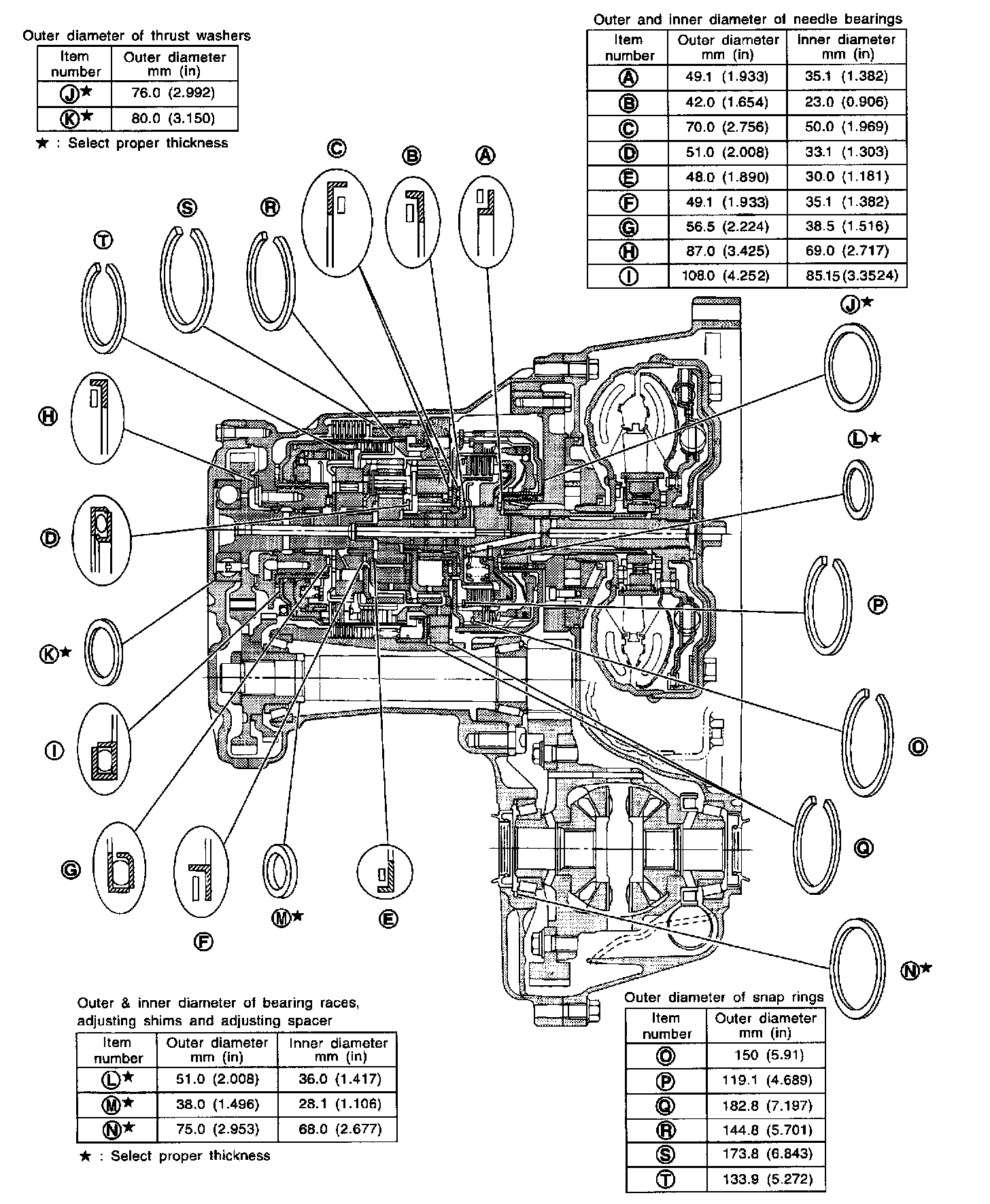 Locations of Needle Bearing, Thrust Washers and Snap Rings