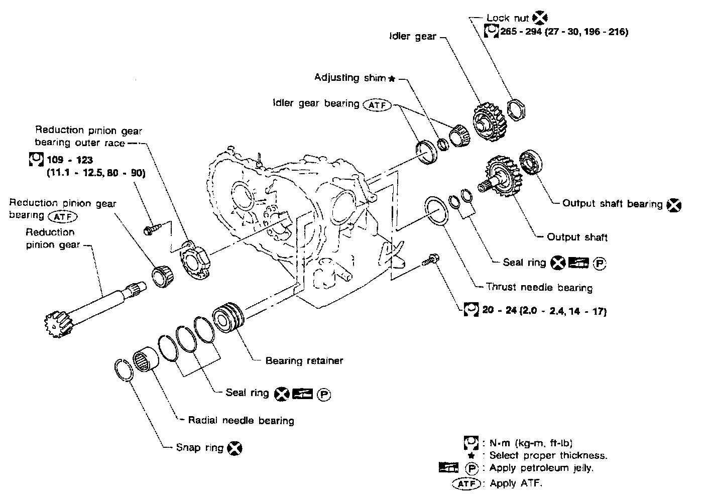 Output Shaft, Idler Gear, Reduction Pinion Gear and Bearing Retainer