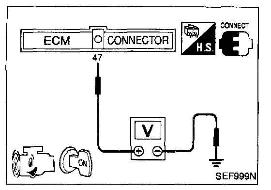 4. If the voltage is out of specification, disconnect mass air flow sensor harness connector and connect it again. Repeat above check.