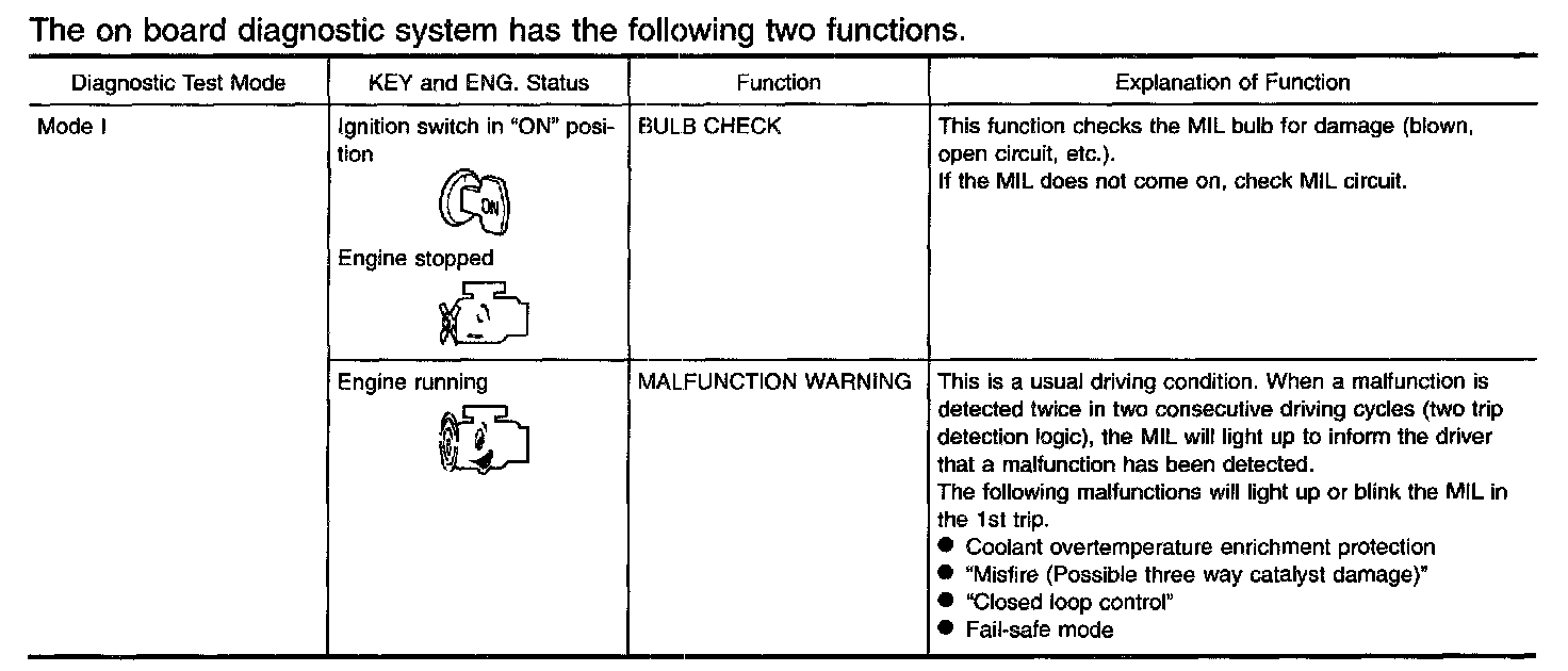 - The MIL will go off when the B counter reaches 3. (*2 in "OBD SYSTEM OPERATION CHART")