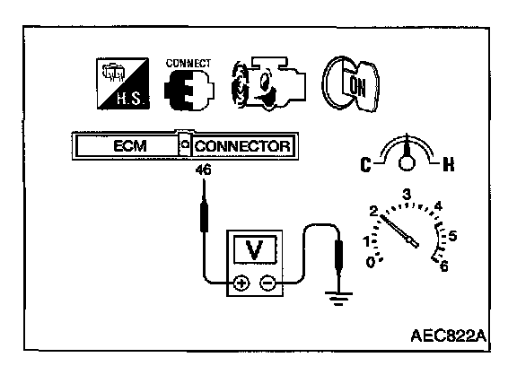 2. Set voltmeter probes between ECM terminal (46) (sensor signal) and engine ground.