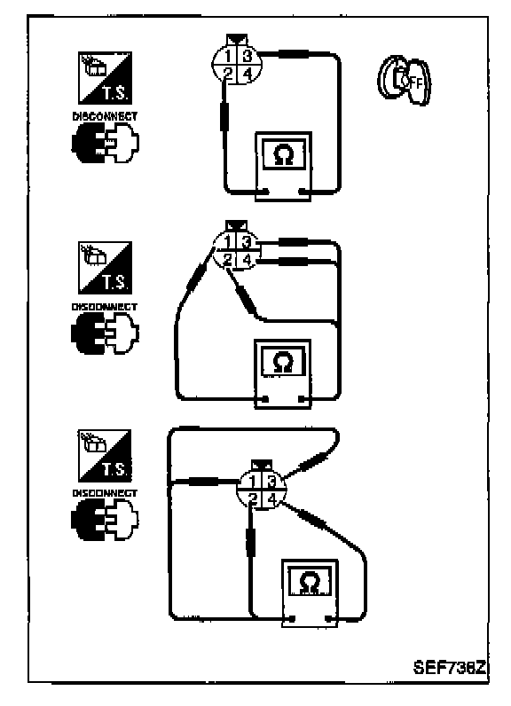 Check continuity between terminals (2) and (1), (3) and (2).