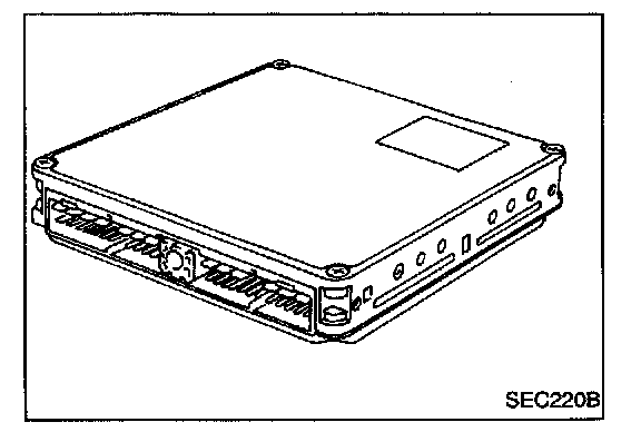 The ECM consists of a microcomputer, diagnostic test mode selector, and connectors for signal input and output and for power supply. The unit controls the engine.