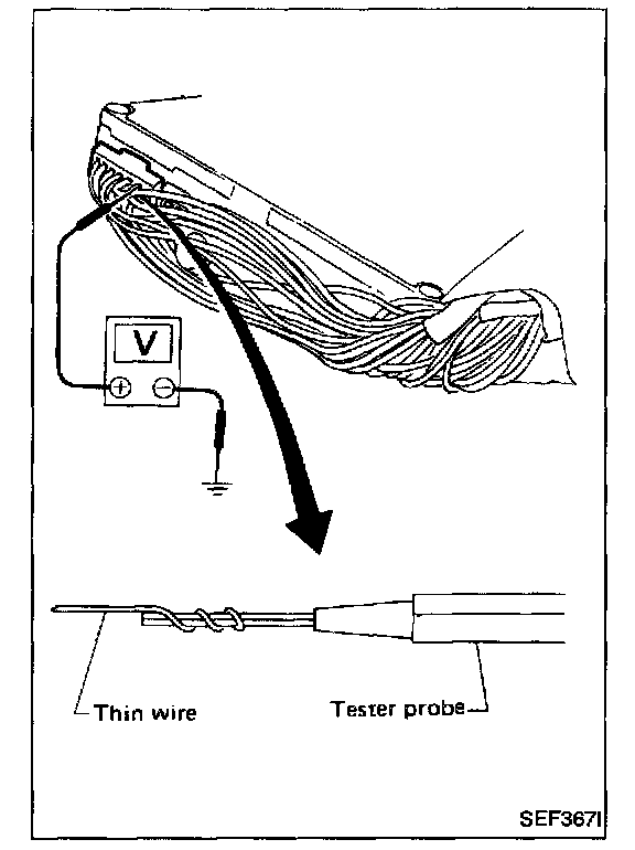 3. Perform all voltage measurements with the connector connected. Extend tester probe as shown to perform tests easily.