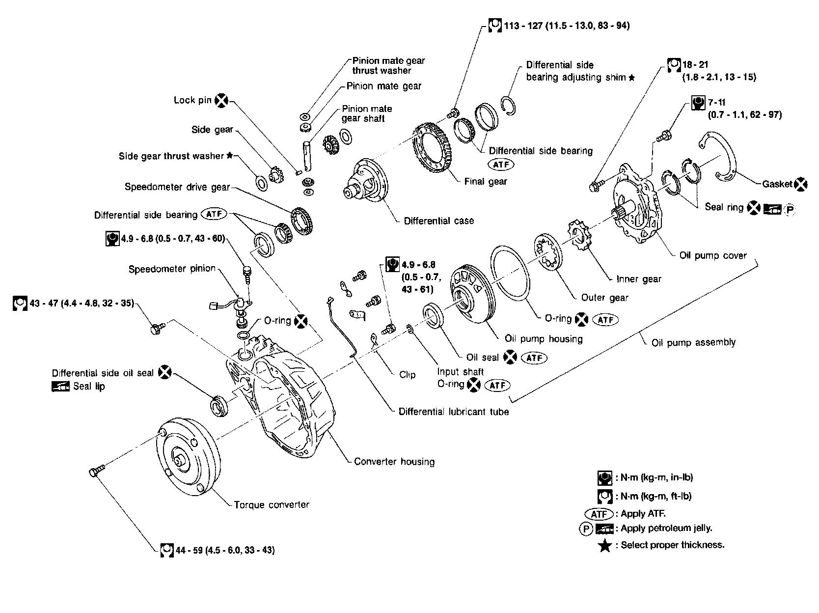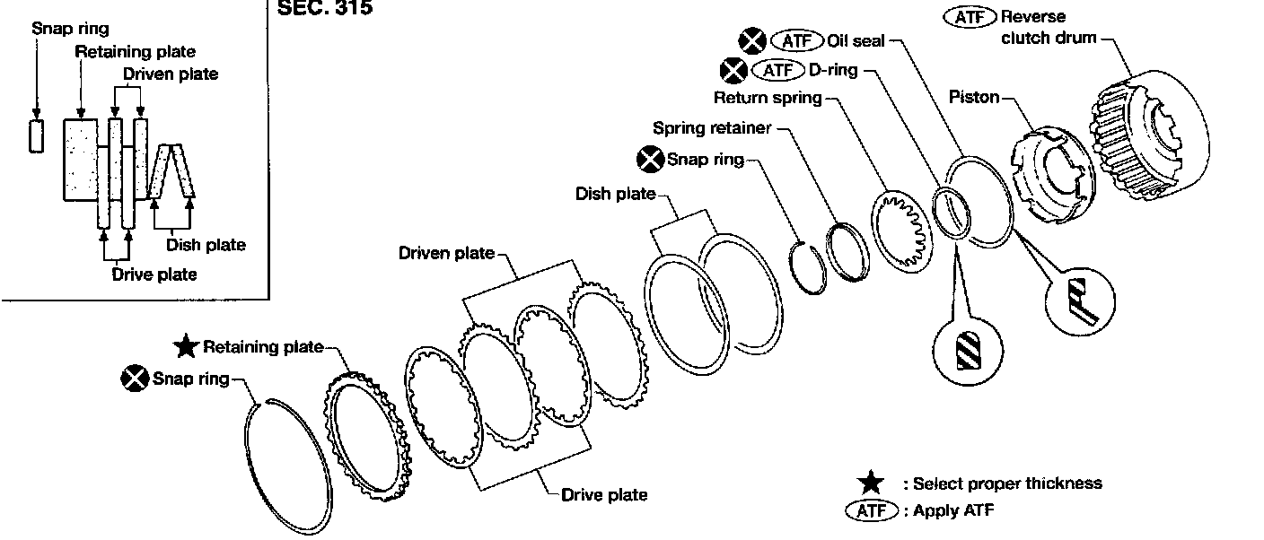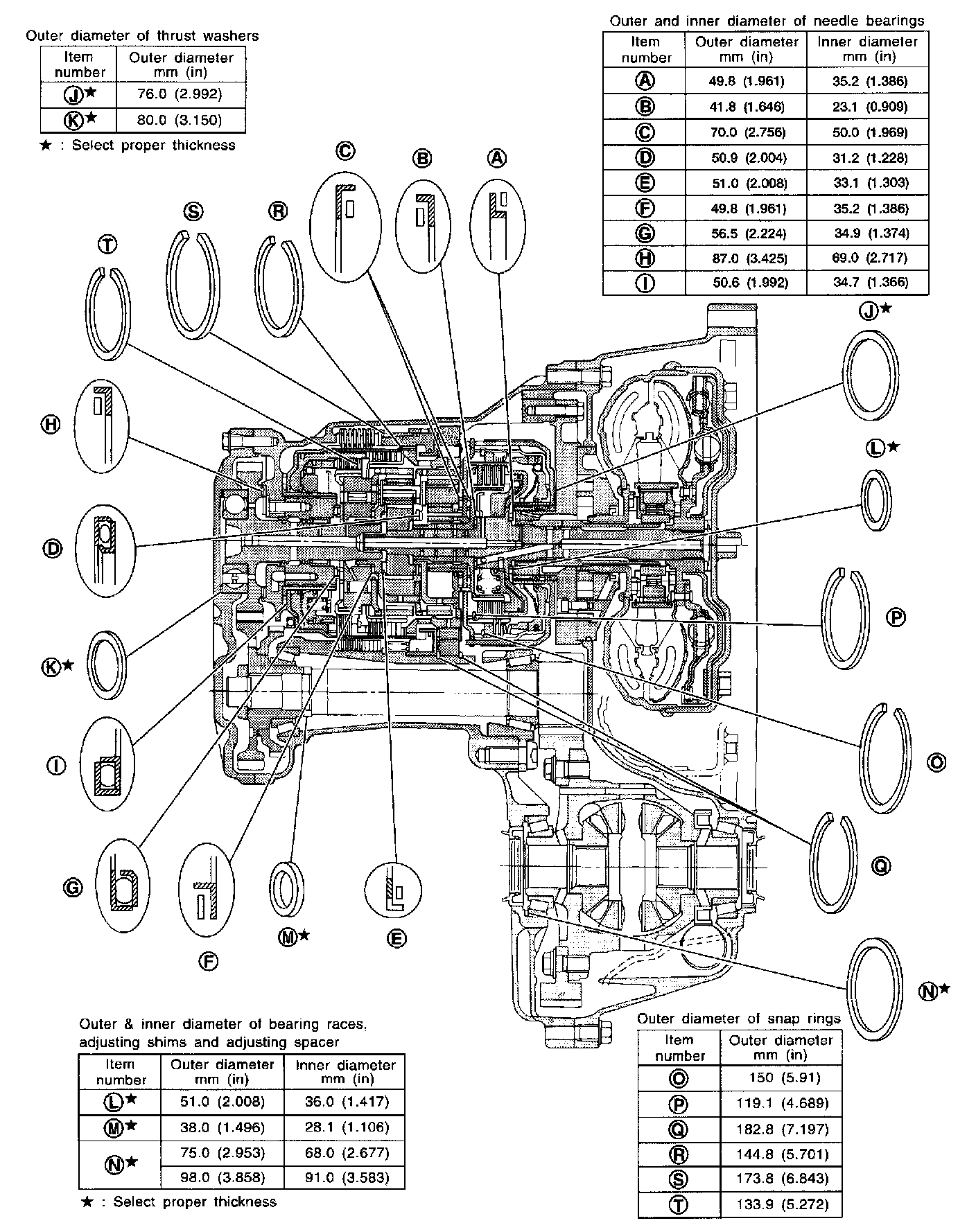 Locations of Needle Bearing, Thrust Washers and Snap Rings