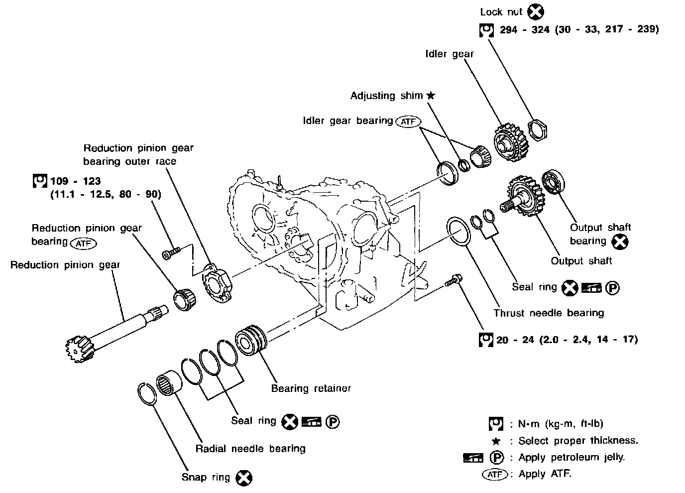 Output Shaft, Idler Gear, Reduction Pinion Gear and Bearing Retainer