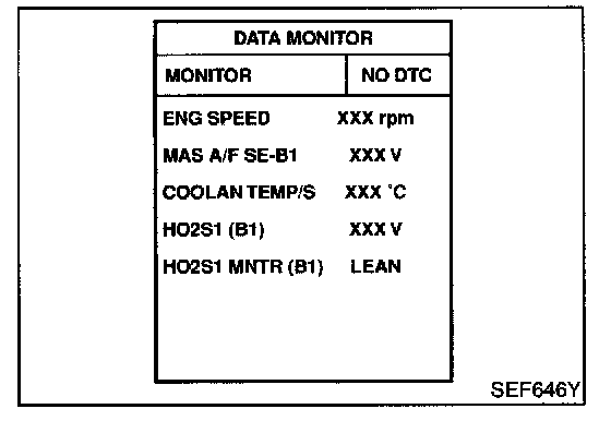 2. Select "MANU TRIG" and "HI SPEED" in "DATA MONITOR" mode with CONSULT-II, and select "HO2S1 (B1)" and "HO2S1 MNTR (B1)".