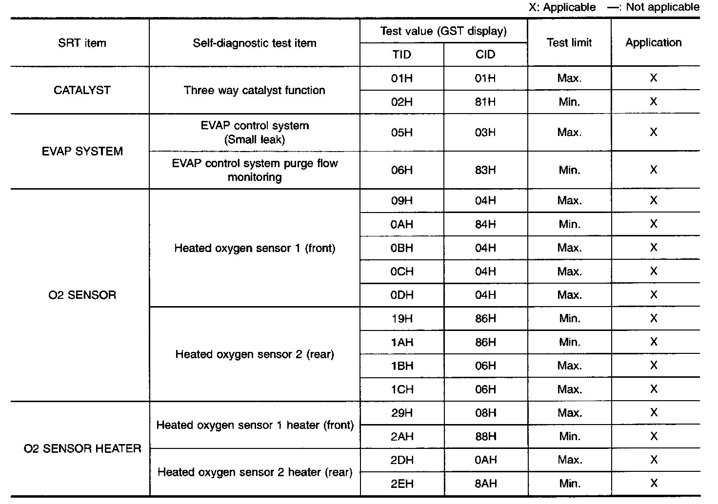 The test value is a parameter used to determine whether a system/circuit diagnostic test is "OK" or "NG" while being monitored by the ECM during self-diagnosis. The test limit is a reference value which is specified as the maximum or minimum value and is compared with the test value being monitored.