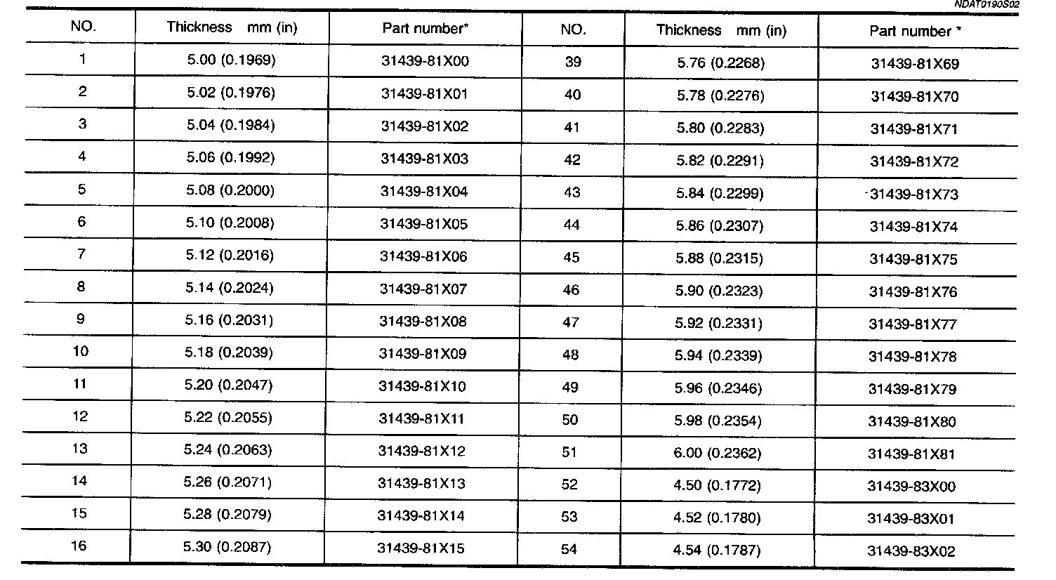 DIFFERENTIAL SIDE BEARING PRELOAD ADJUSTING SHIMS