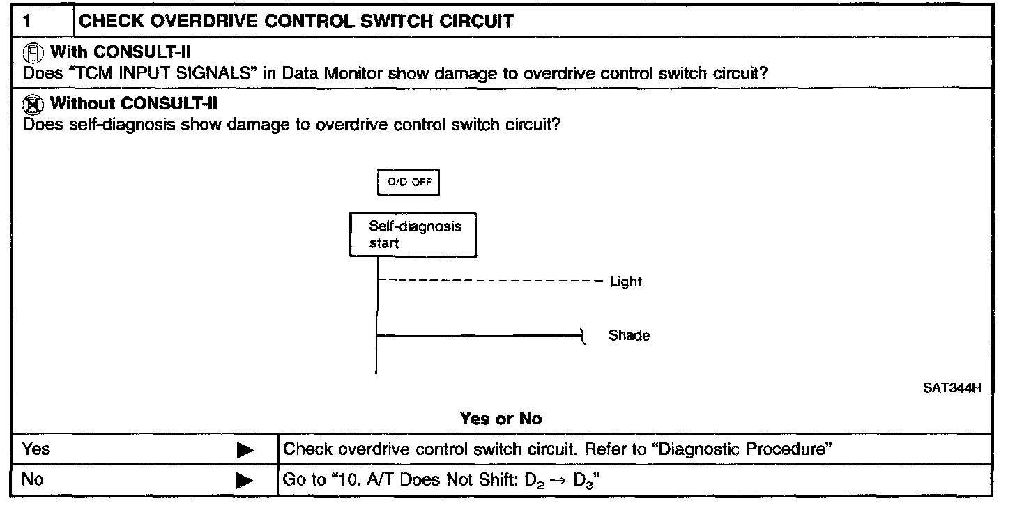 SYMPTOM: A/T does not shift from D(4) to D(3) when changing overdrive control switch to OFF position.