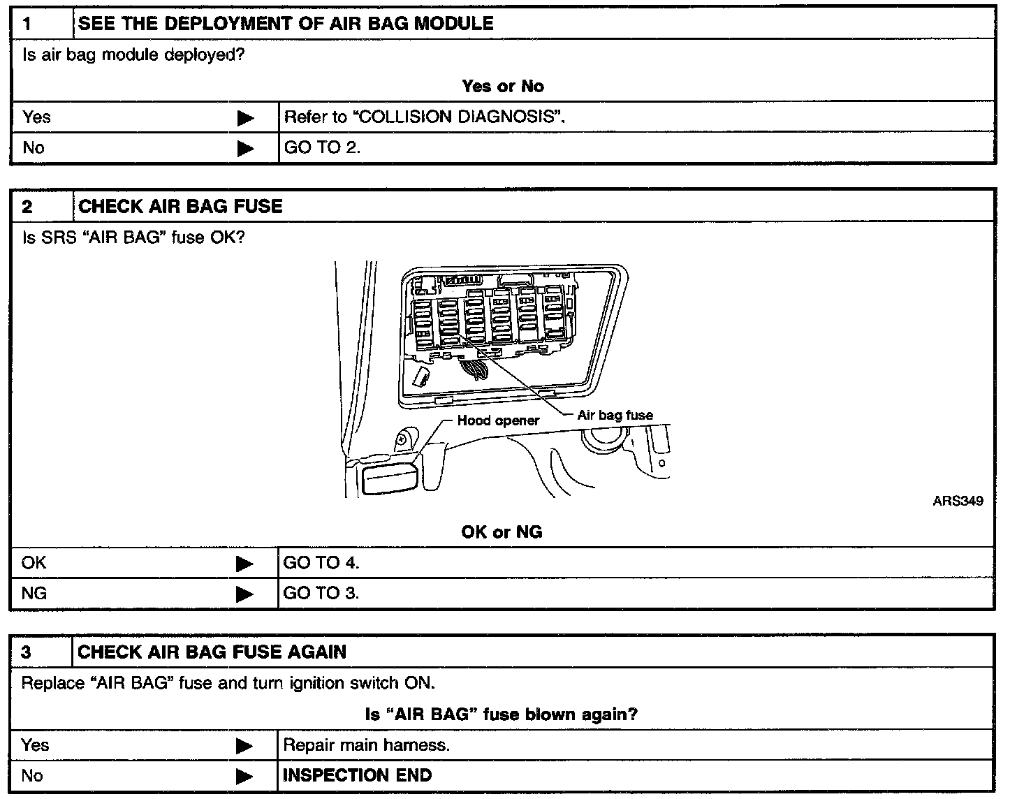 Diagnostic Procedure 9 ("Air Bag" Warning Lamp Does Not Turn Off) Steps 1 - 3: