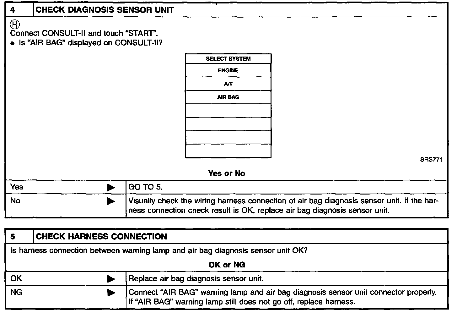 Diagnostic Procedure 9 ("Air Bag" Warning Lamp Does Not Turn Off) Steps 4 - 5: