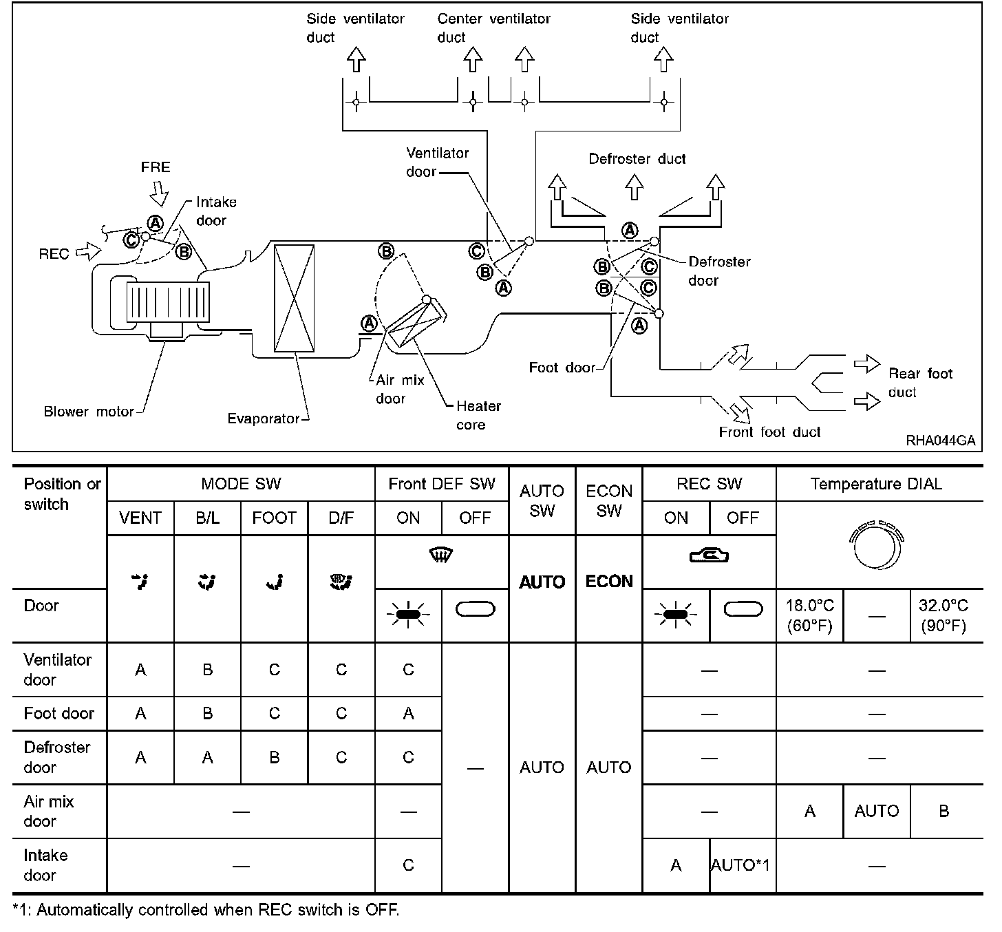 Switches And Their Control Functions / Automatic Air Conditioning: