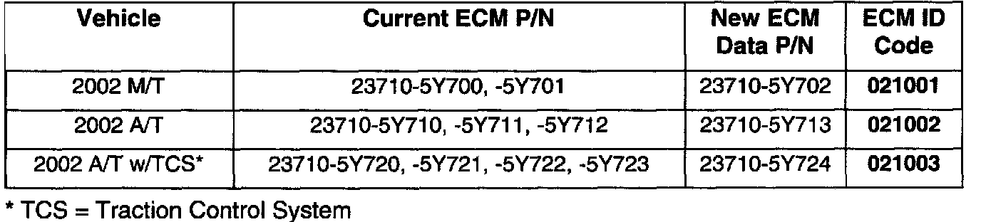 5. Compare the vehicle's ECM P/N to those shown under Current ECM P/N in Chart A: