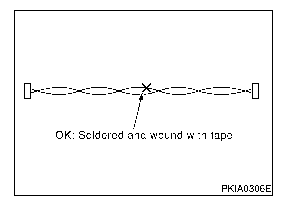 - Do not perform bypass wire connections for the repair parts. (The spliced wire will become separated and the characteristics of twisted line will be lost.)