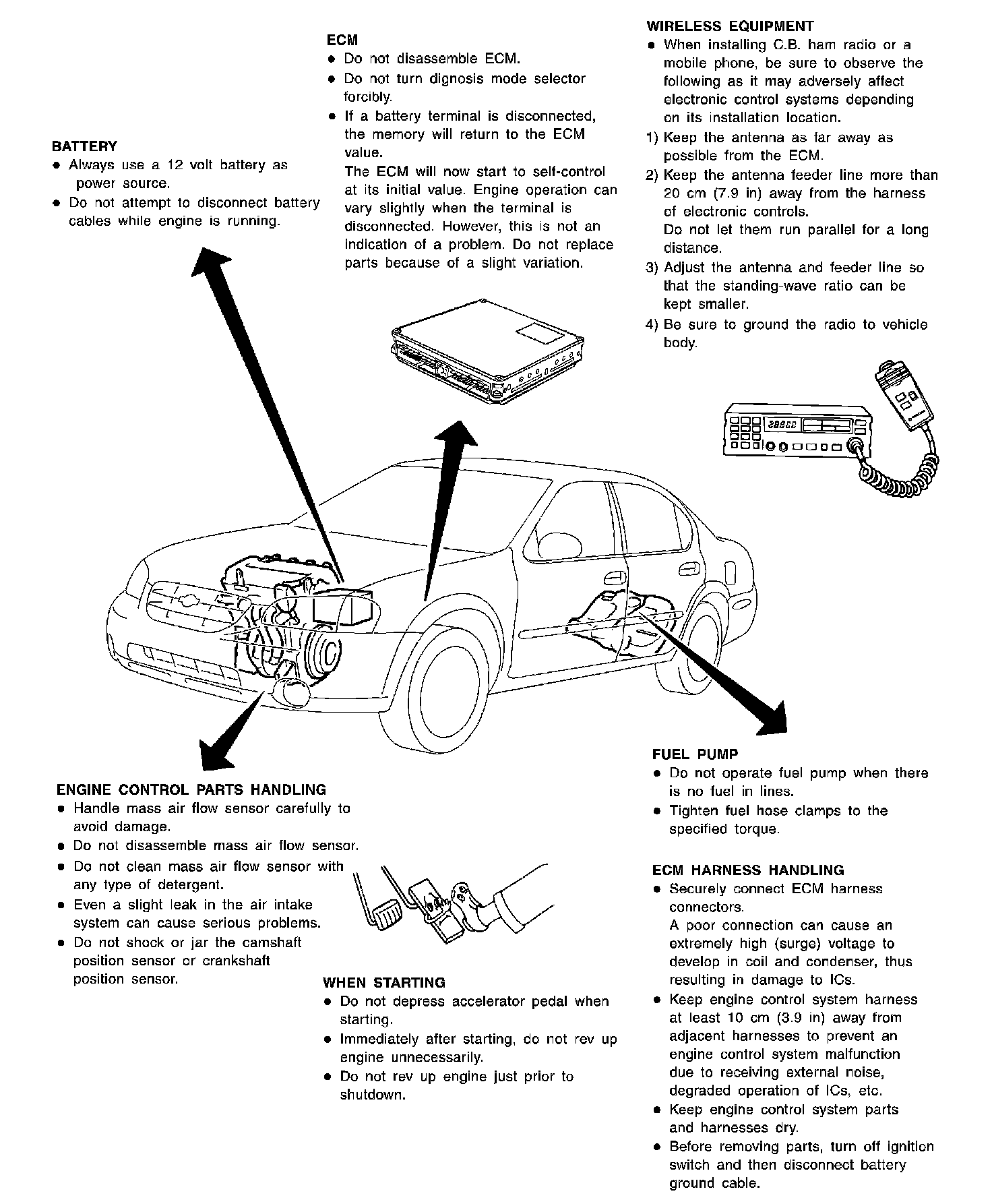 - Do not use ECM ground terminals when measuring input/output voltage. Doing so may result in damage to the ECM's transistor. Use a ground other than the ECM terminals, such as the ground.