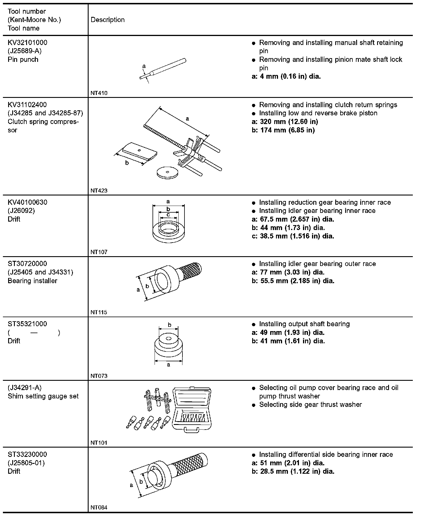 The actual shapes of Kent-Moore tools may differ from those of special service tools illustrated here.