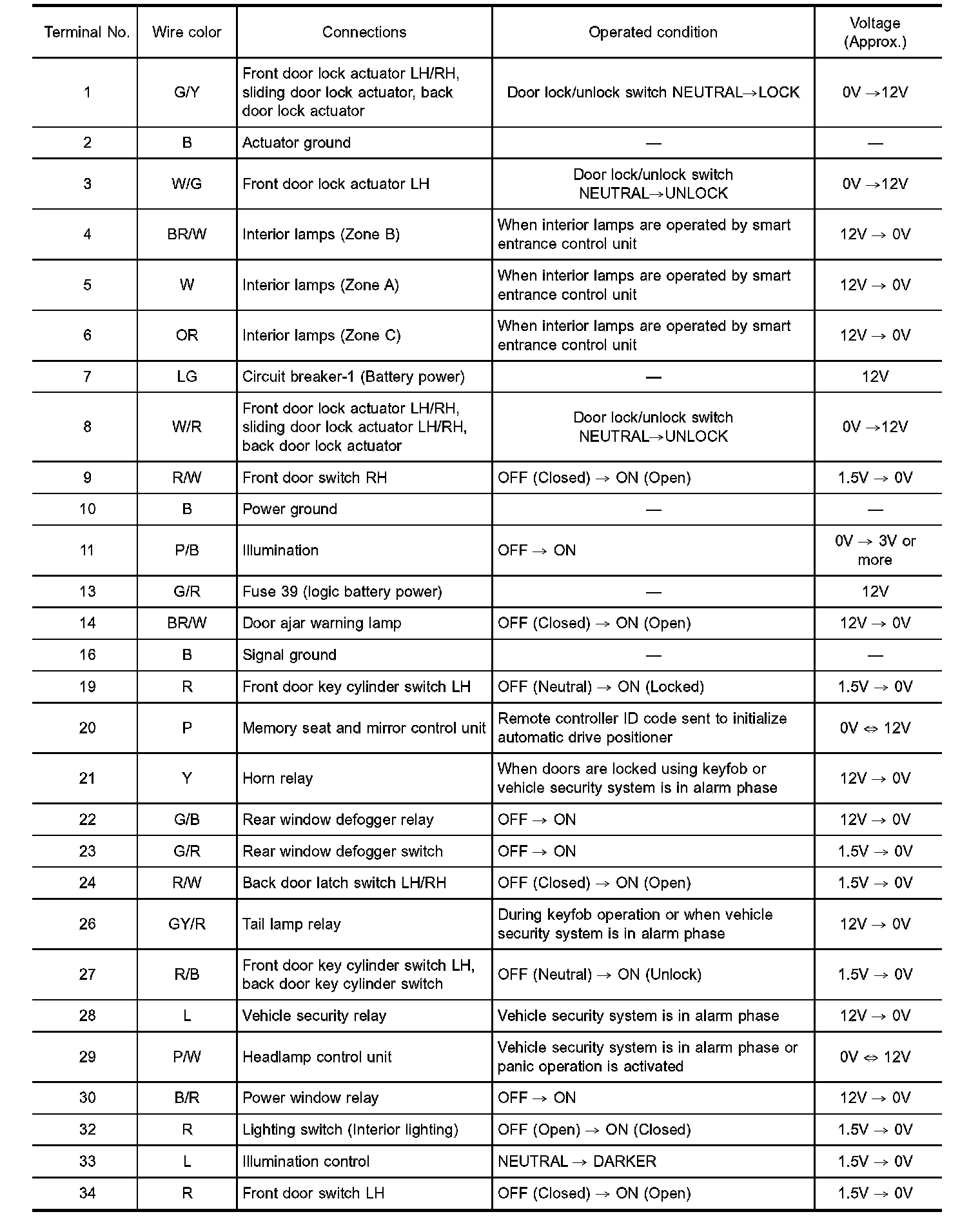 Smart Entrance Control Unit Inspection Table Terminal No: 1 - 34: