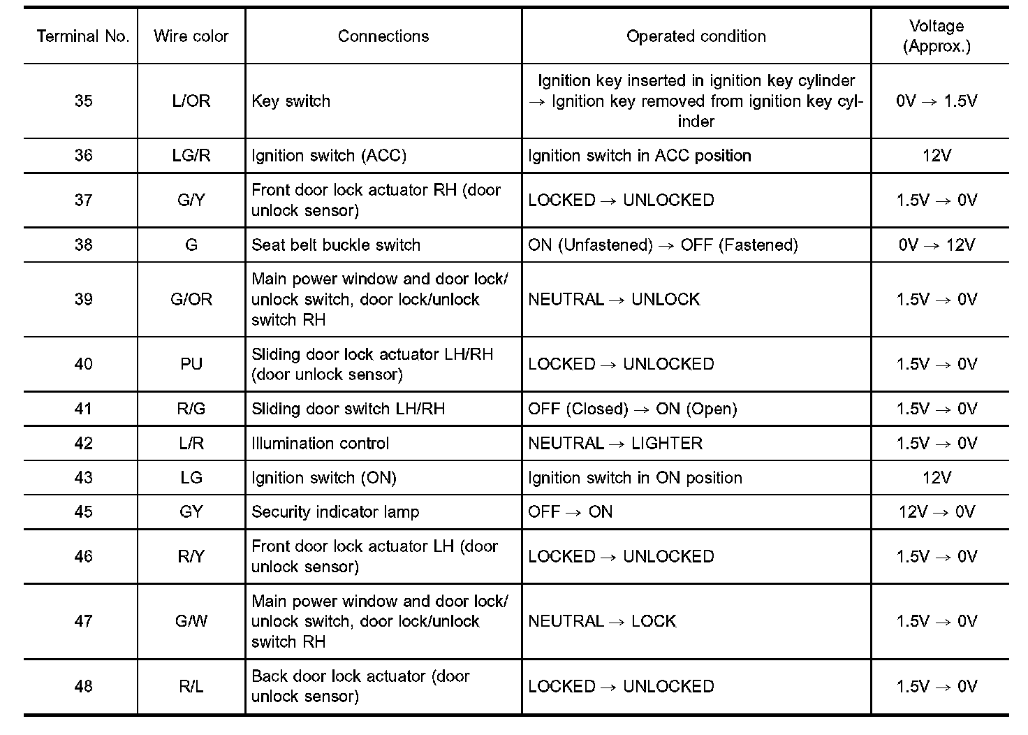 Smart Entrance Control Unit Inspection Table Terminal No: 35 - 48:
