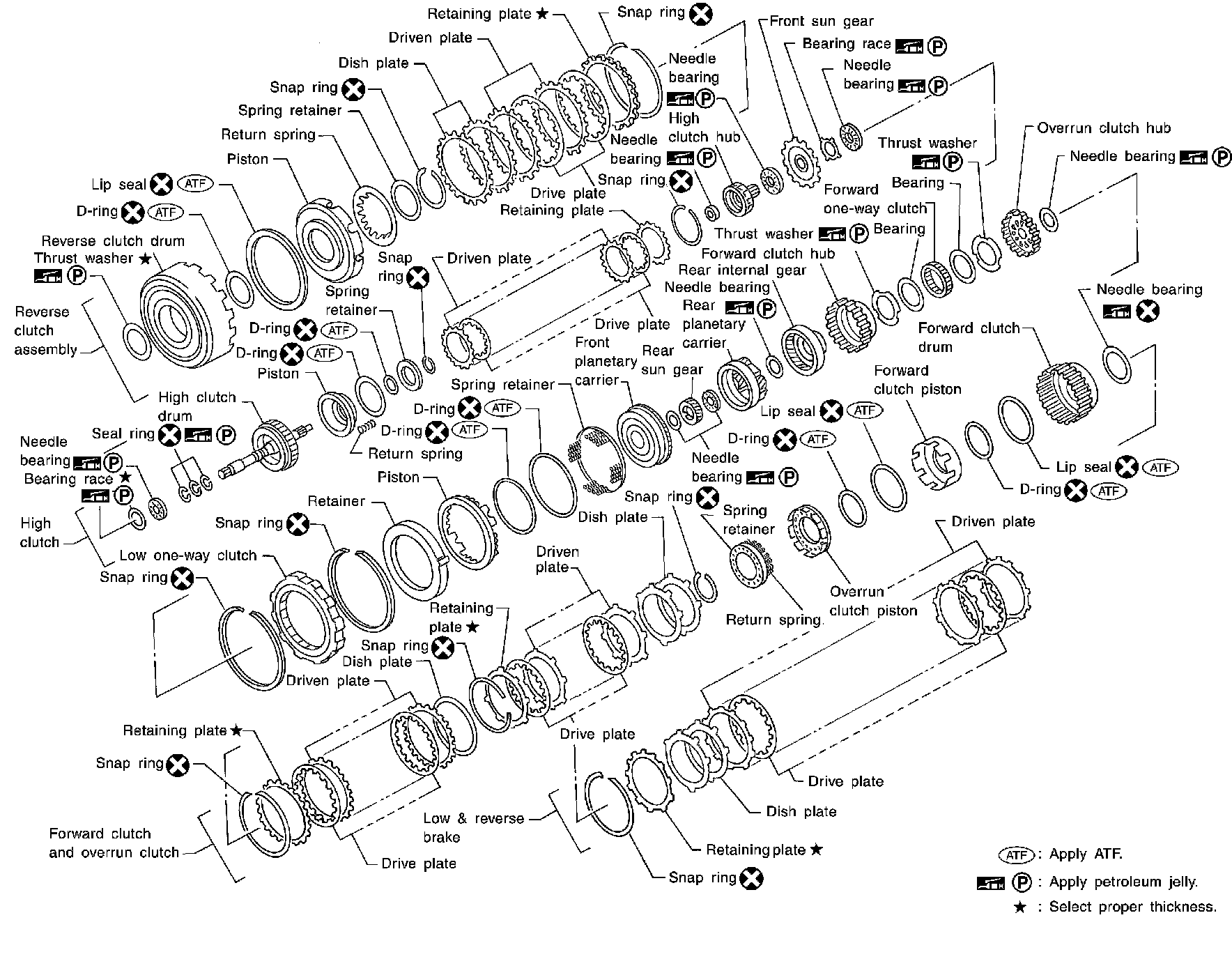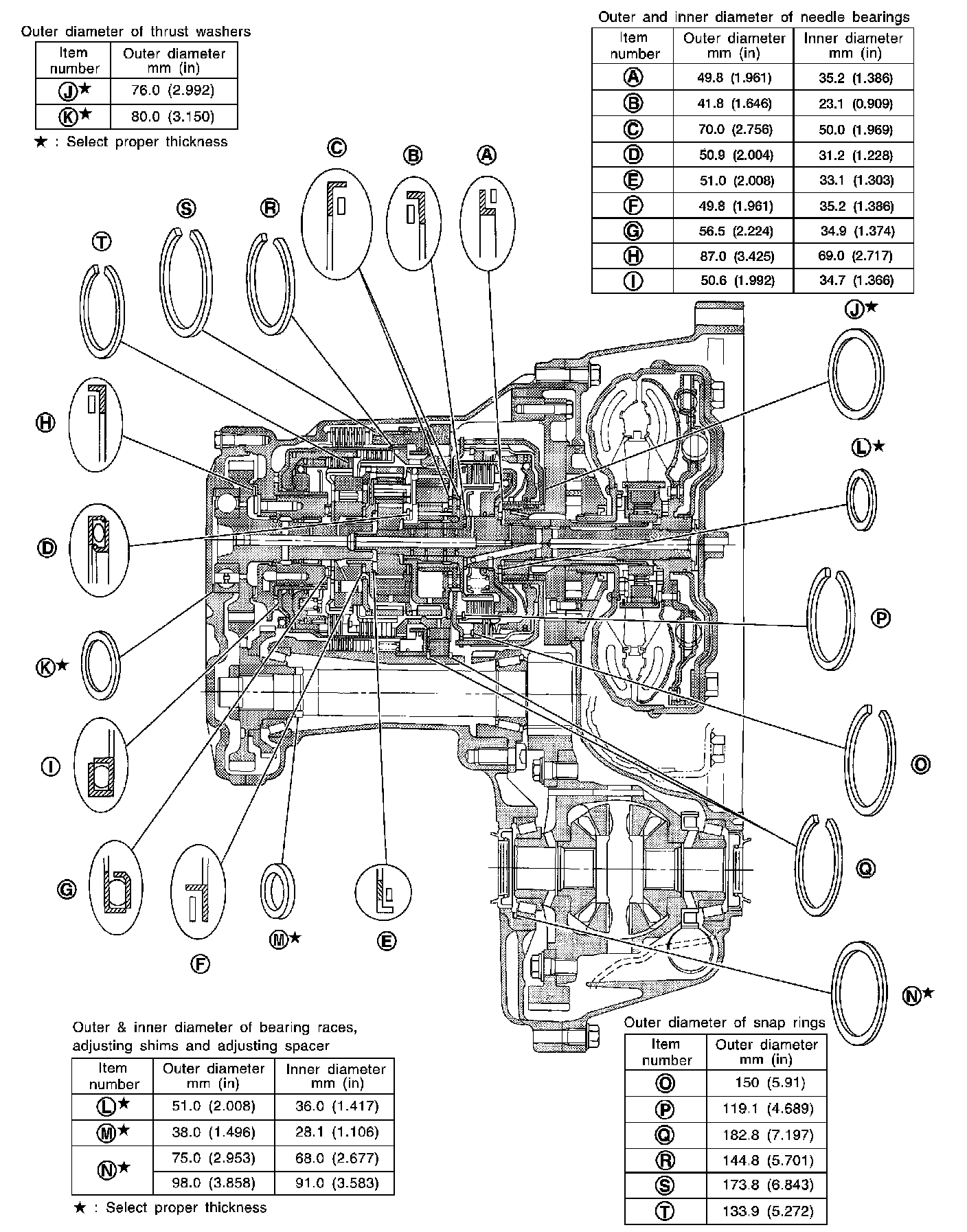 Locations of Adjusting Shims, Needle Bearings, Thrust Washers and Snap Rings: