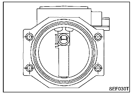 The mass air flow sensor is placed in the stream of intake air. It measures the intake flow rate by measuring a part of the entire intake flow. It consists of a hot film that is supplied with electric current from the ECM. The temperature of the hot film is controlled by the ECM a certain amount. The heat generated by the hot film is reduced as the intake air flows around it. The more air, the greater the heat loss.
