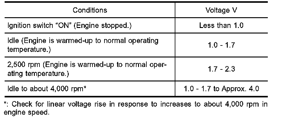 4. If the voltage is out of specification, disconnect mass air flow sensor harness connector and connect it again. Then repeat above check.