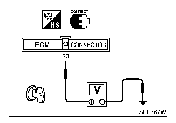 3. Check voltage between ECM terminal 23 (Throttle position sensor signal) and ground.