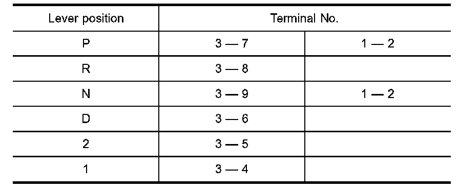 5. If OK on step 4, adjust park/neutral position (PNP) switch. Refer to "Park/Neutral Position (PNP) Switch Adjustment".