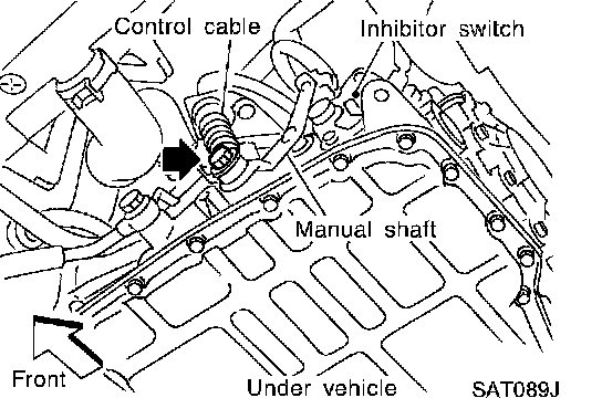 2. If NG, check again with manual control cable disconnected from manual shaft of A/T assembly. Refer to step 1.