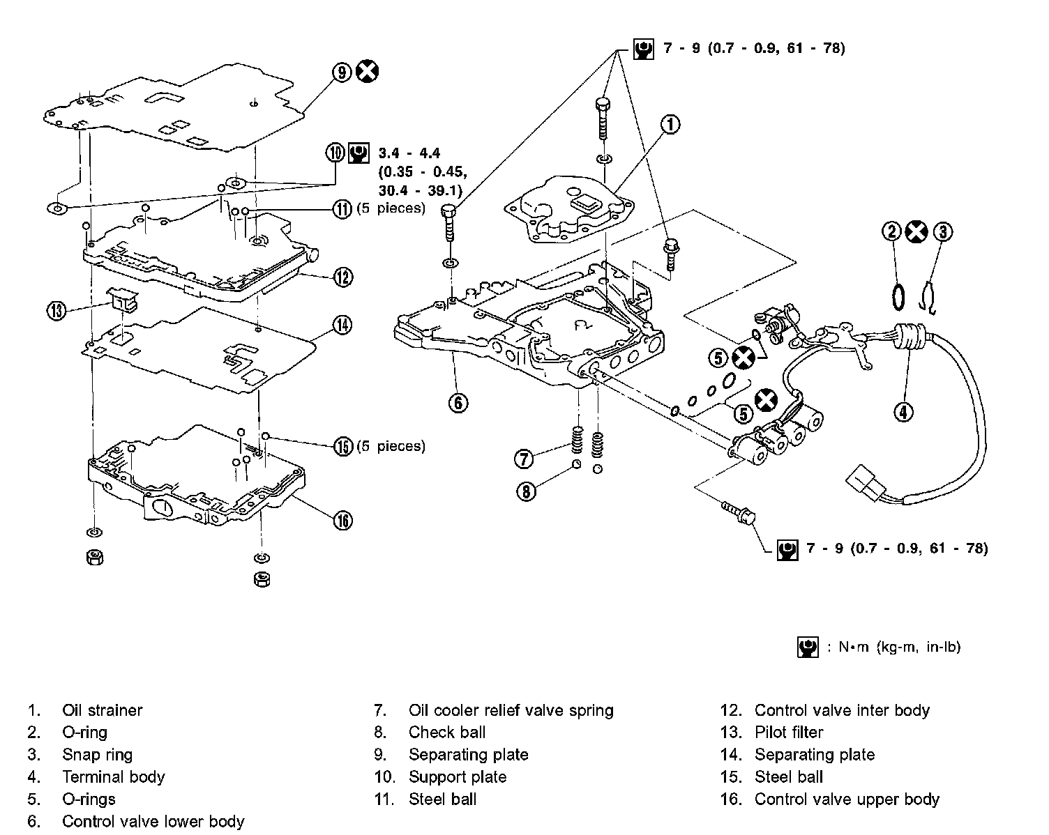 Locations of Adjusting Shims, Needle Bearings, Thrust Washers and Snap Rings: