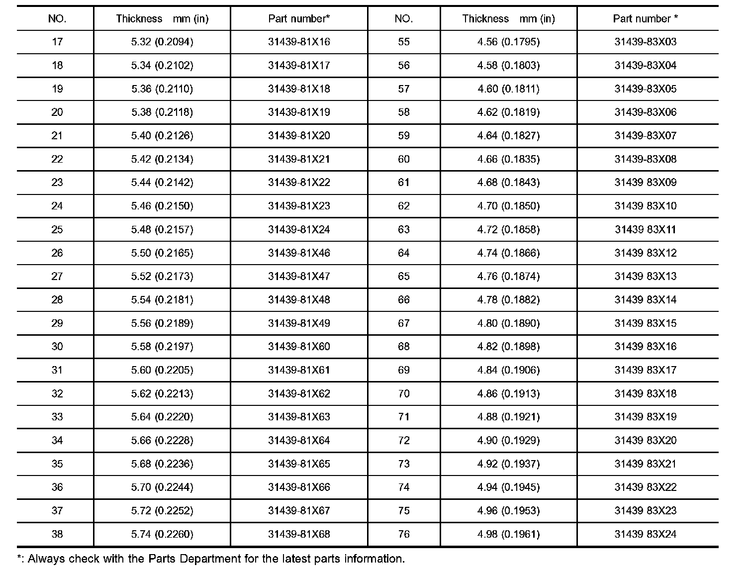 Total End Play / Bearing Race For Adjusting Total End Play: