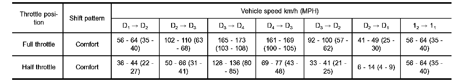 Shift Schedule / Vehicle Speed When Shifting Gears Throttle Position: