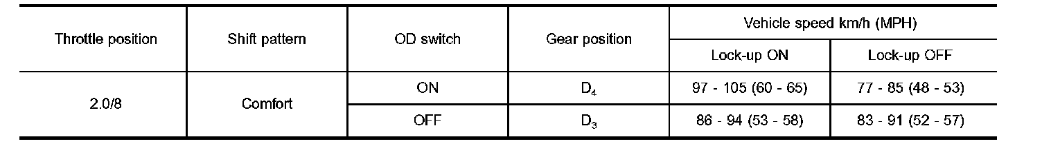 Shift Schedule / Vehicle Speed When Performing And Releasing Lock-Up: