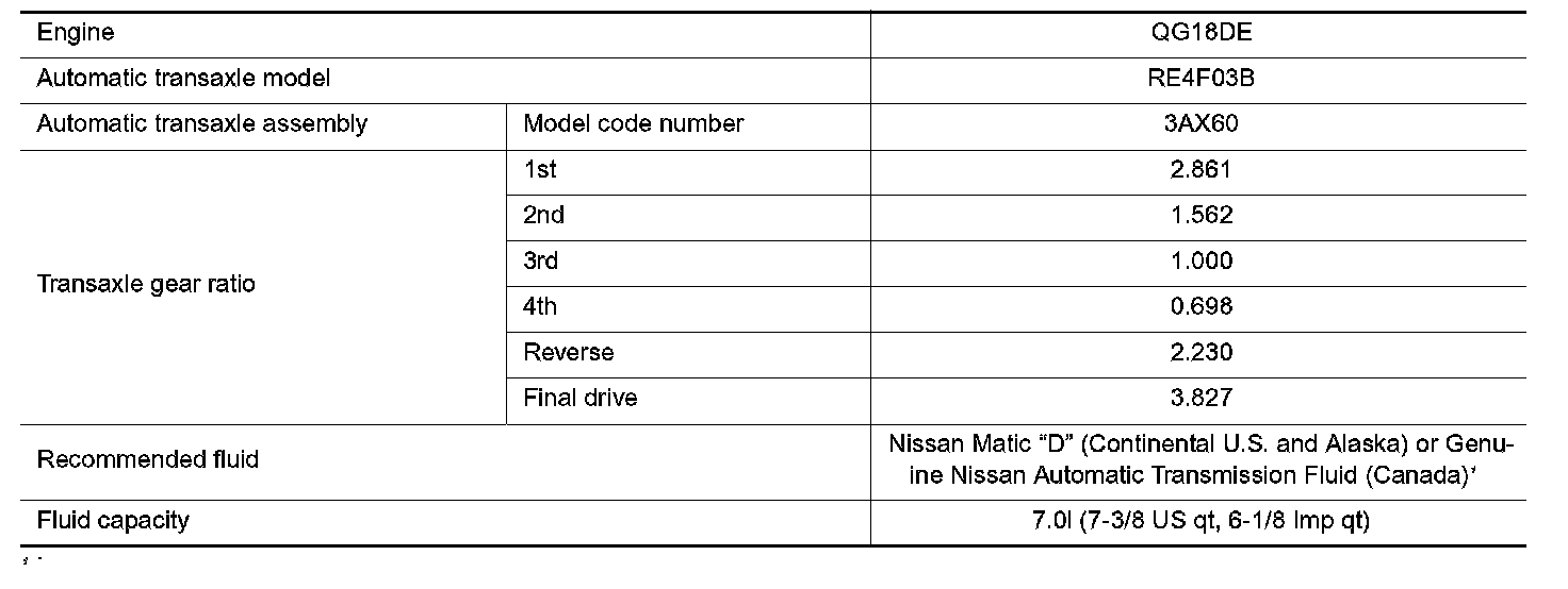 Automatic TransmissionGeneral Specifications