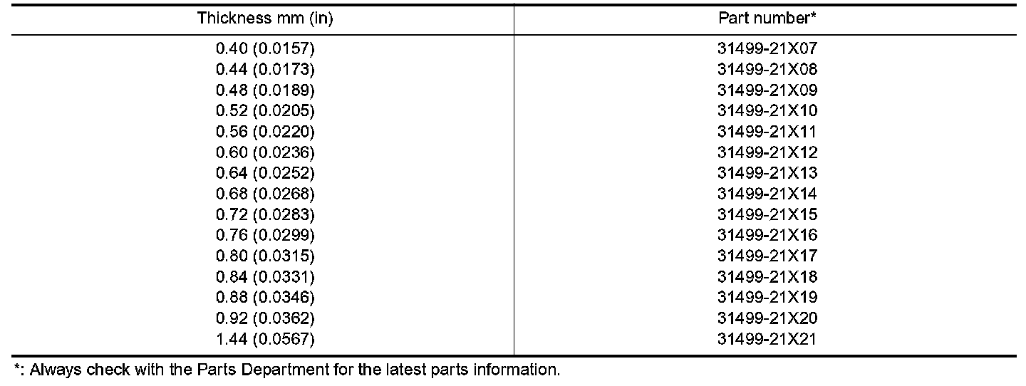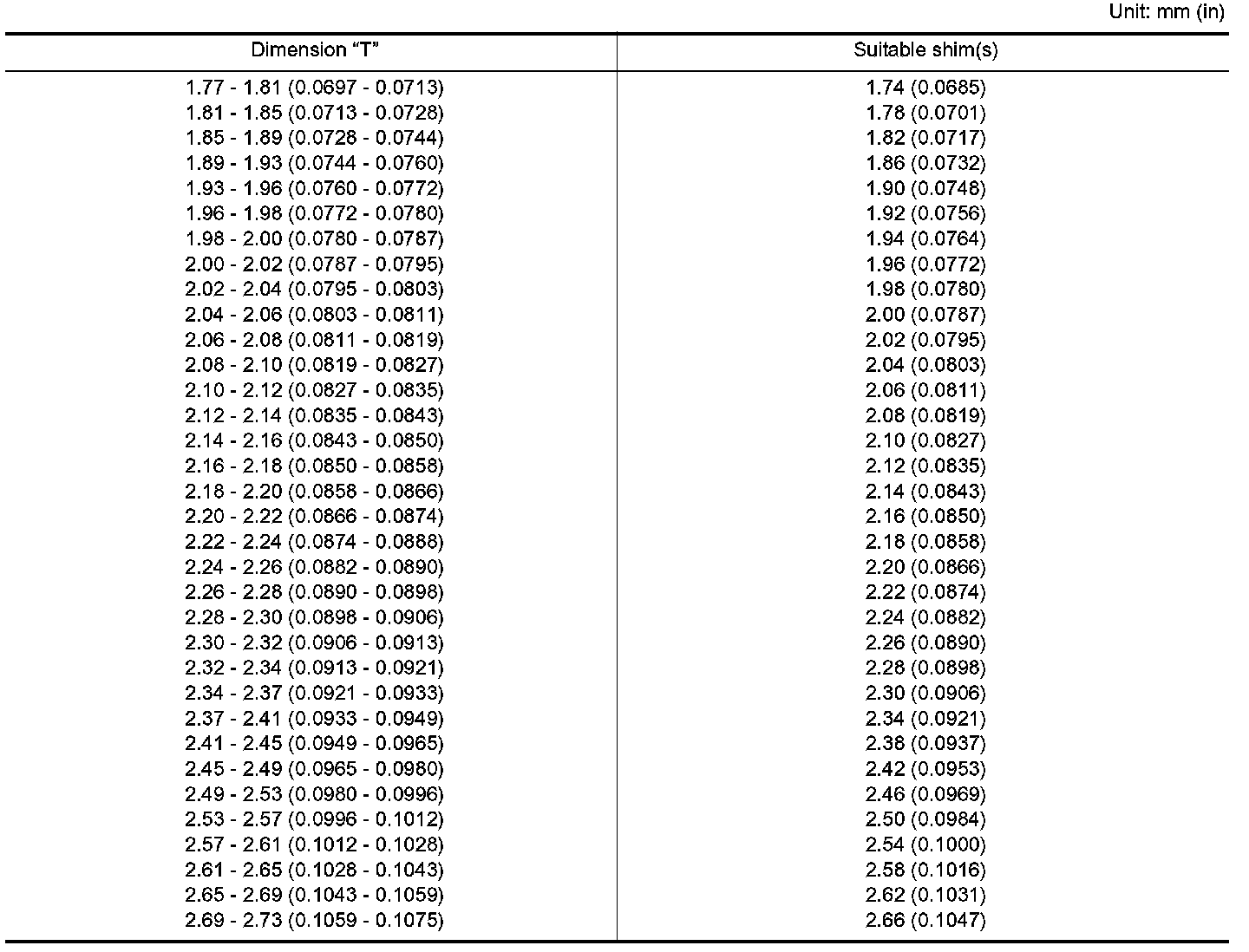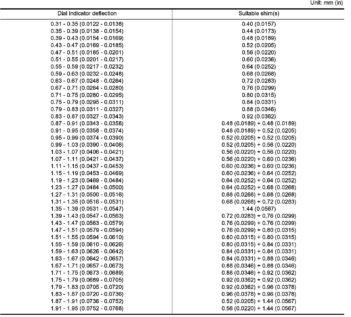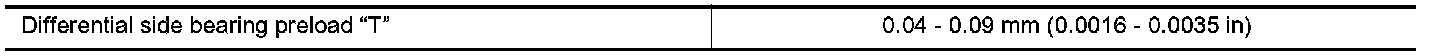 TABLE FOR SELECTING DIFFERENTIAL SIDE BEARING ADJUSTING SHIMS