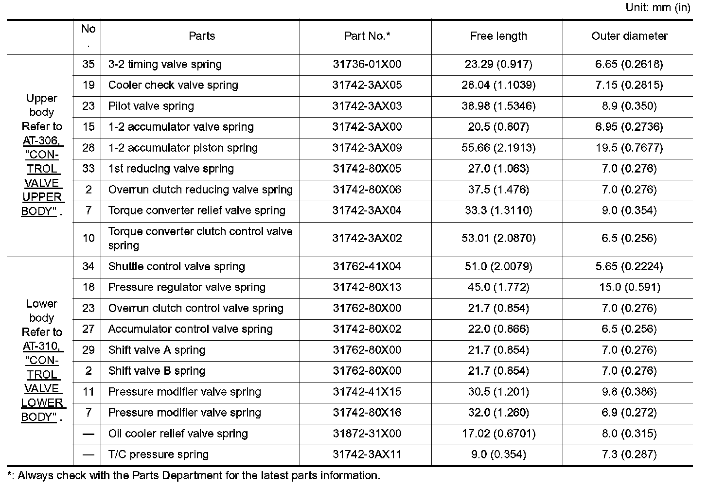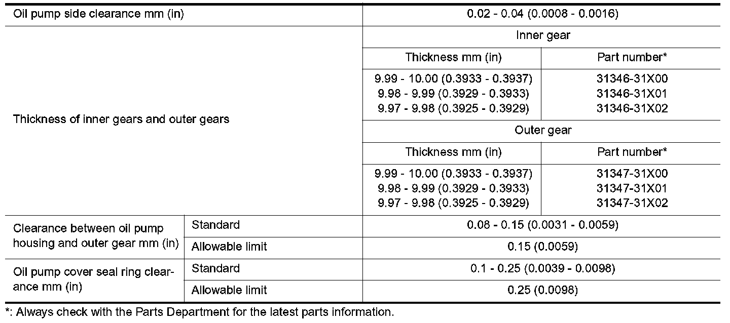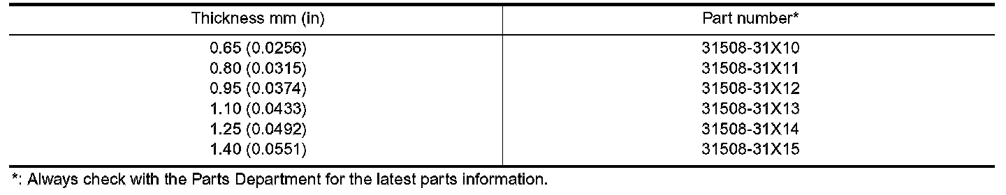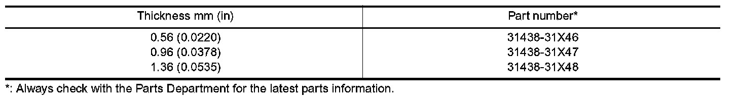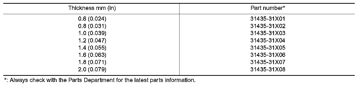 TABLE FOR SELECTING DIFFERENTIAL SIDE BEARING ADJUSTING SHIMS