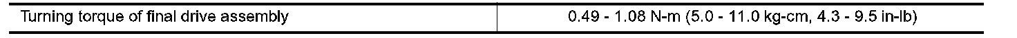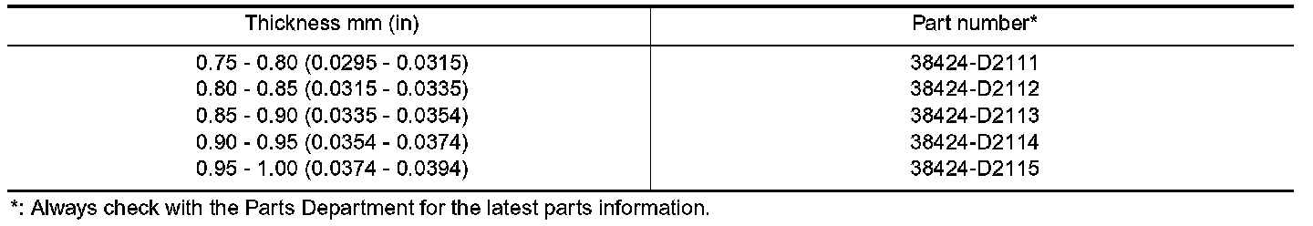 TABLE FOR SELECTING REDUCTION PINION GEAR BEARING ADJUSTING SHIM